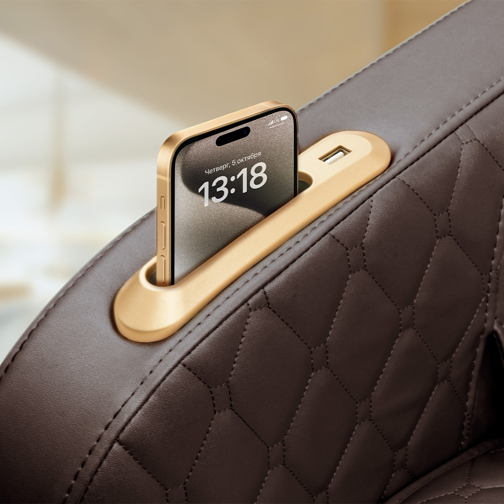 Благородный тёмно-коричневый цвет обивки отвечает тенденциям современного оформления жилых и коммерческих помещений. В сочетании с японским минимализмом, повышенным комфортом и капсульной геометрией это делает Osaka Light Brown идеальным вариантом массажной мебели. Вам всегда будут доступны эксклюзивные массажные программы и широкий функционал кресла, которые помогут расслабиться и насладиться новым телесным опытом.